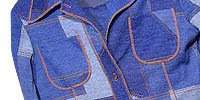 From April 30, 2009 my aim is to wear denim every day for a year. By denim I mean everything from the definition of denim fabric… to fabric that emulates the look of denim… like this beautiful faux denim patchwork suit found on Digital Vintage.