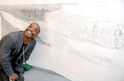 Wiltshire is drawing a 20-foot panoramic view of New York – all from memory.
