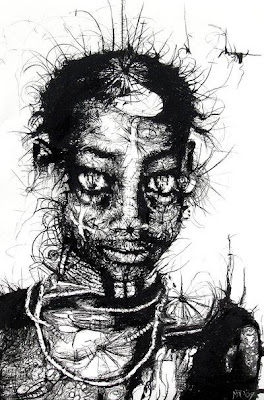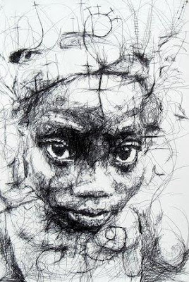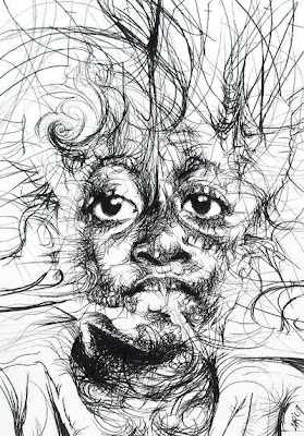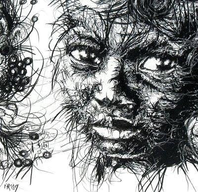I convey emotion through line(s). I don’t really shade my works. I criss-cross. I weave. I guess that’s the best way to describe what I do.