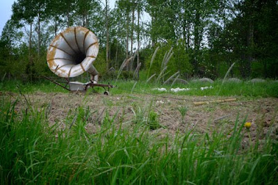 The vinyl is dead. Good. Now listen to the beautiful noise of the earth. Harvest (2009) is a new art piece for the new instrument terrafon, traditional ensemble and cropland – by Olle Cornéer and Martin Lübcke. In this performance Alunda Church Choir, conducted by Cantor Jan Hällgren, plays the soil of northern Uppland (in Sweden) on terrafon. Harvest by Alunda Kyrkokör was exhibited at the Volt Festival in Uppsala the 6th of June 2009. Terrafon is a large agricultural version of the horn gramophone, amplifying the sounds in the track it ploughs. There is more to come. There are still many croplands still untouched by terrafon. The only thing needed is a powerful local musical ensemble that can sweat it out. This is indeed a demanding piece. Watch the performance here: on Vimeo. The artist-duo has before created the sound installation Bacterial Orchestra (www.bacterialorchestra.com) as well as an iPhone-generation of the same art piece, called Public Epidemic No 1. Olle Cornéer is also a electronic musician/producer/composer, while Martin Lübcke has a Ph.D. in theoretical physics (superstring theory)” – Olle Cornéer